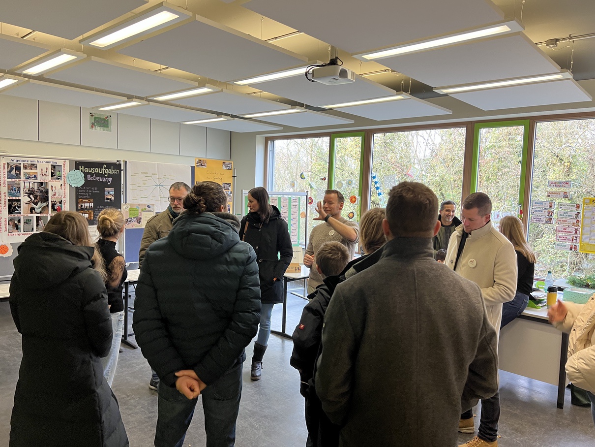 Schulleiter Olaf Bogusch begrüßte zu Beginn alle geladenen Gäste, viele Kolleginnen und Kollegen, die Hausmeister und Sekretärinnen. Neben Landrat Jan Weckler gehörten Landtagspräsident Norbert Kartmann, Thomas Gerlach als ehemaliger Schulleiter und jetziger Fördervereinsvorsitzender, Kristina Paulenz – Vorsitzende des Bildungsausschusses im Kreistag-, Bundestagsmitglied Oswin Veith, Gerhard Weber als Vertreter der Gemeinde Wölfersheim, Schulelternbeiratsvorsitzender Patrick Eulenkamp und viele Vertreter des sehr engagierten Fördervereins und Schulelternbeirats zu den Gästen. Auch Vertreter der verschiedenen Baufirmen nahmen an der Eröffnung teil.