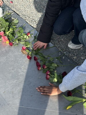 Den Abschluss des Besuchs bildete eine gemeinsame Reflexionsphase an der Gedenkplatte. Mit einer stillen Blumenniederlegung gedachten die Schülerinnen und Schüler der Opfer des Konzentrationslagers. Die Verlesung zentraler Artikel der Allgemeinen Erklärung der Menschenrechte stellte bewusst eine Verbindung zwischen den historischen Ereignissen und den heutigen demokratischen Werten her.