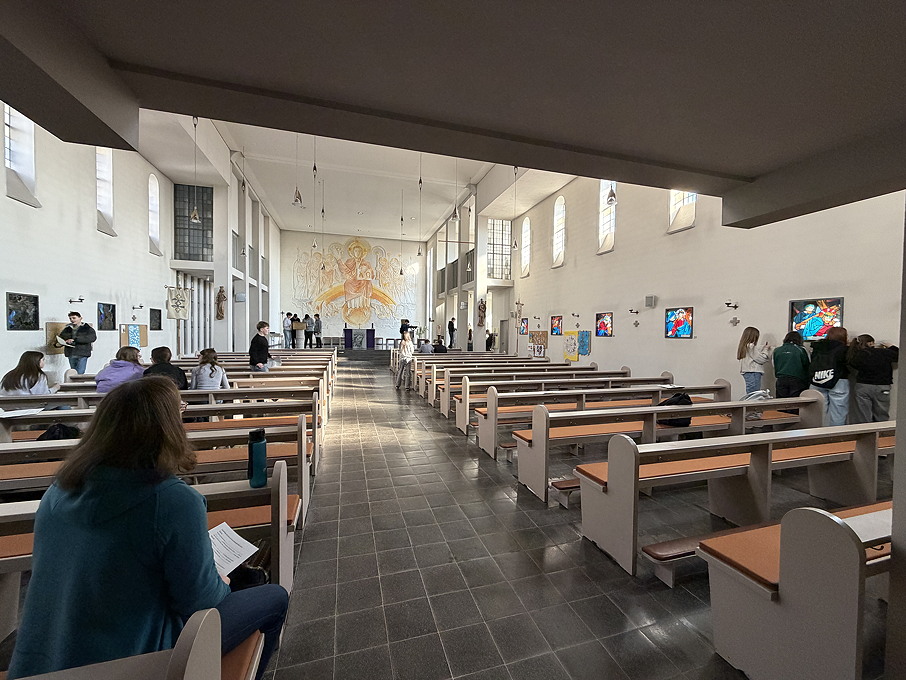In sechs Wochen vor den Osterferien wurde im achten Jahrgang Ökumene ganz konkret gelebt: Die katholisch und evangelischen Religionskurse von Frau Simon und Frau Schmidt arbeiteten kursübergreifend zusammen und wurden zeitweise zusammengelegt. Je nach Phase wurde gemeinsam im Plenum oder in Gruppen gearbeitet. Dabei konnten die Schülerinnen und Schüler die Räume flexibel wählen und eigenständig lernen. Auch Stationenlernen war Teil des Unterrichts.
