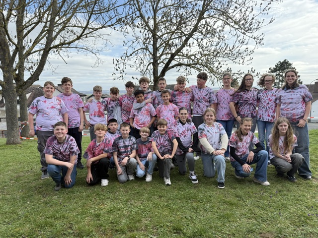 Im Rahmen eines Kunstprojekts hat sich die Klasse 7R1 bewusst gegen den einfachen Weg entschieden, fertige T-Shirts zu bestellen – und stattdessen ihre ganz eigenen Klassenshirts gestaltet. Mit viel Kreativität und Engagement wurden die Shirts zunächst eigenständig gebatikt und so jedes Stück zu einem echten Unikat.