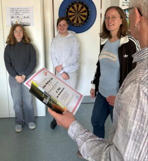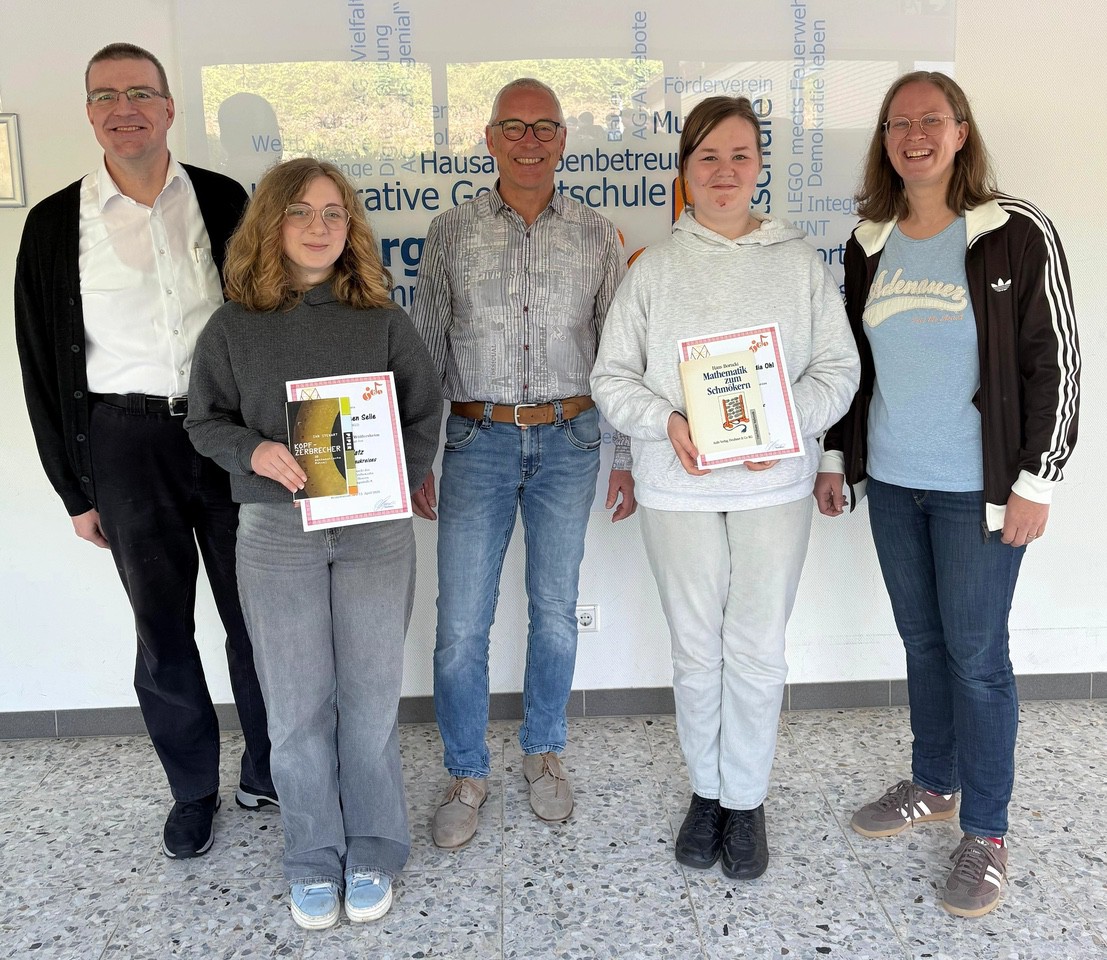 Schulleiter Olaf Bogusch beglückwünschte die Schülerinnen sowie ihre Lehrkräfte Thomas Wilhelm Schwarzer bzw. Franziska Johanna Simon zu diesem hervorragenden Ergebnis und überreichte den beiden Siegerinnen Urkunden und Buchpreise.